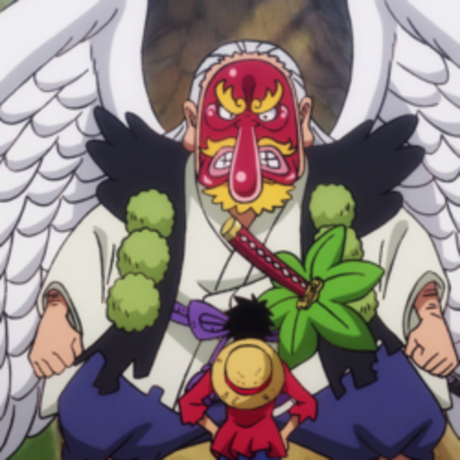 This is a picture of Tenguyama Hitetsu, a fictional character, a swordsmith and monk who collects kokeshi dolls from the One Piece manga. Hitetsu is a large man who shares many similarities with the legendary tengu in the real world, as he wears a dark tengu mask over his face and has an extremely long nose, which appears to elongate. and zoom out continuously.